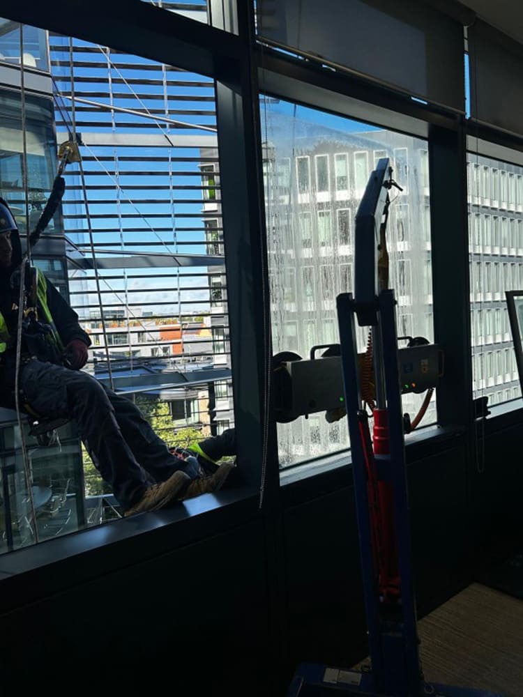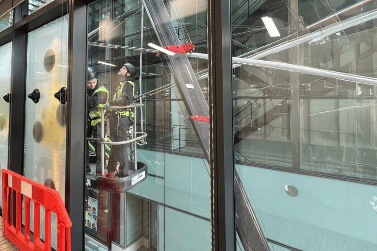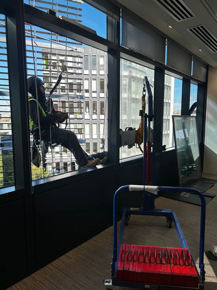 The damaged glazing was located across multiple elevations, each requiring a tailored access solution. A combination of rope access, bespoke scaffolding, MEWPs, spider cranes and specialist glass lifting equipment was needed to complete the works safely.